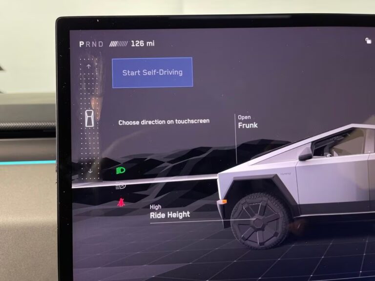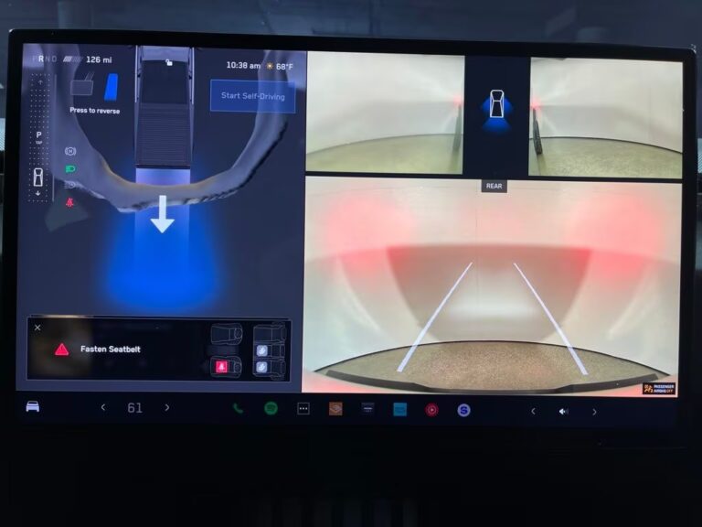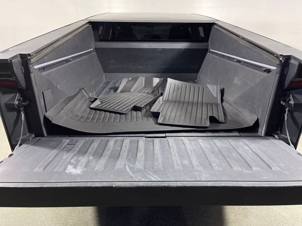 Inside, the Cybertruck features a modern minimalist interior with a large 18.5-inch touchscreen infotainment system, premium audio system, wireless connectivity, navigation, and advanced driver-assistance features. Additional highlights include adaptive air suspension, a panoramic glass roof, a powered tonneau cover, multiple power outlets, and a spacious cargo bed (“Vault”) designed for utility and durability.